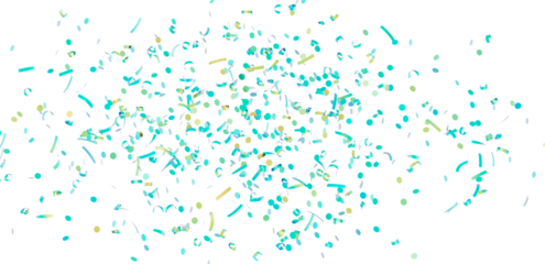 High-resolution image of teal and gold confetti exploding, perfect for celebratory designs and backgrounds.