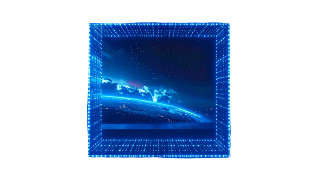Frame featuring a vibrant nebula with glowing stars, representing space, cosmos, astronomy, and science on a transparent background