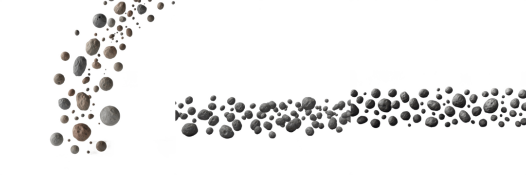 Asteroids and meteoroids drifting through space, forming a celestial debris field with a transparent background