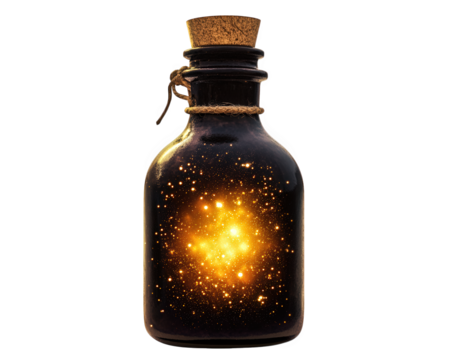 Medieval potion bottle with glowing liquid, magical essence inside, enchanting and mysterious, perfect for fantasy themes
