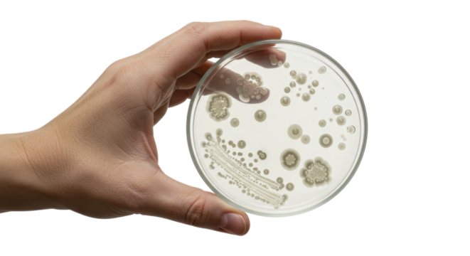 Isolated Petri Dish with Bacterial Colonies in Hand