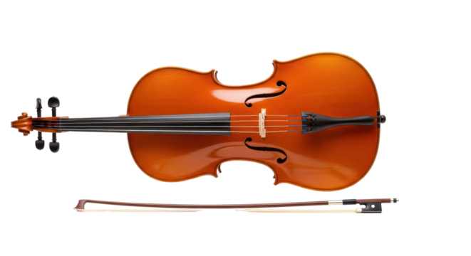 Isolated cello with bow for classical music performance and orchestral instrument, no background