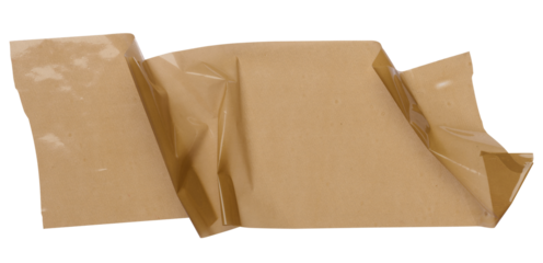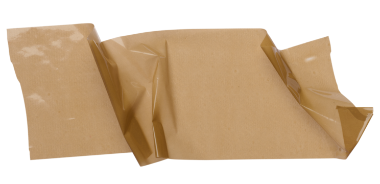 Crumpled piece of brown adhesive cellophane tape, packaging material