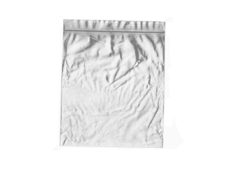plastic transparent cellophane bag, texture looks blank and shiny, plastic surface is wrinkly, old, vintage realistic mockup for packaging food and goods, nylon bag with lock or zip crumpled, template