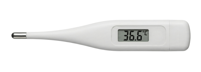 Digital medical thermometer showing fever temperature isolated on transparent background PNG