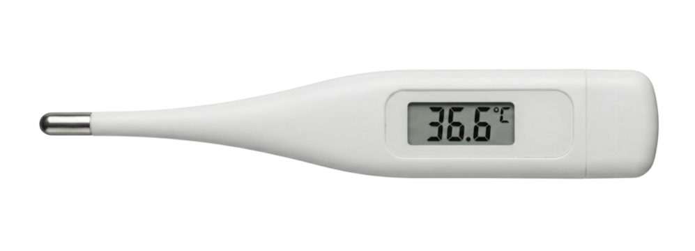 Digital thermometer showing 37.0 degrees Celsius isolated PNG with Transparent Background