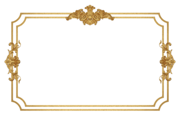 Golden frame with ornate border on transparent background