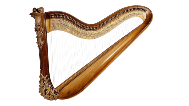 Harp: An intricate and elegant harp, a timeless symbol of music and grace. It's crafted with meticulous detail, showcasing the beauty of traditional craftsmanship.