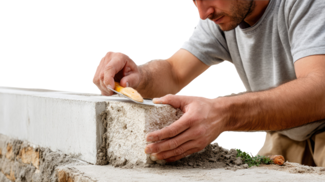 Bricklaying Craftsman at Work: A skilled craftsman meticulously places a brick, the epitome of expertise, building something strong and solid.
