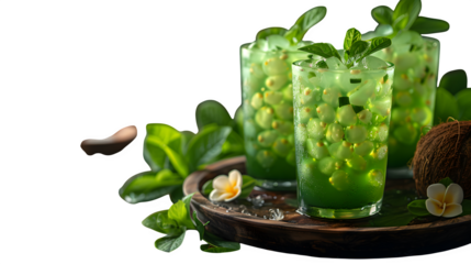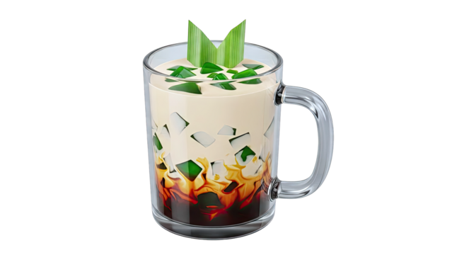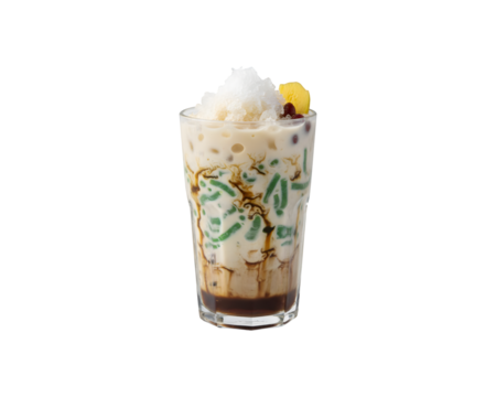 Refreshing cendol dessert drink with coconut milk and palm sugar isolated on transparent background