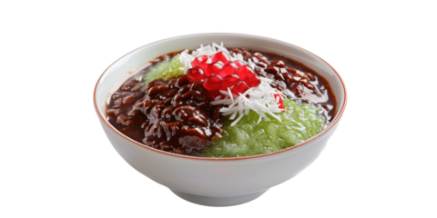 Traditional Cendol Dessert Served in Colorful Patterned Bowl, Isolated on Transparent Background PNG