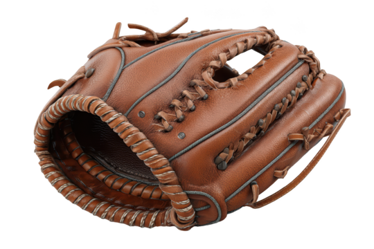 Baseball glove, brown leather, intricate stitching