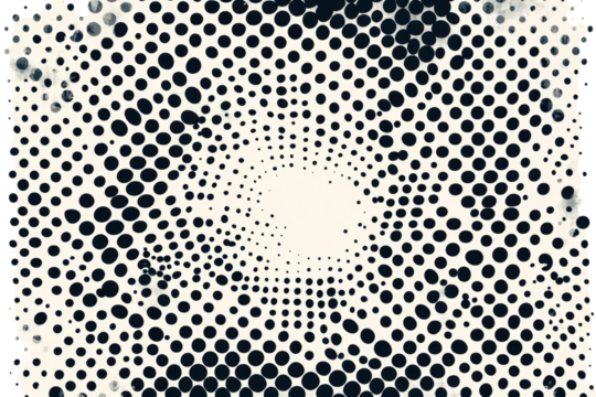 Dense halftone dot pattern forming a bold frame around a clean central fade, set on a transparent background.