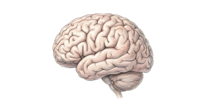 Detailed Human Brain Anatomy Illustration with Cerebrum and Cerebellum isolated on transparent background