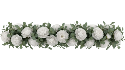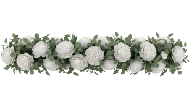 Isolated centerpiece arrangement of white flowers and green foliage for wedding table decor