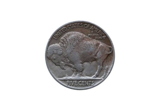 USA five cents Buffalo Indian Head nickel coin dated 1935 back (reverse), png stock photo file cut out and isolated on a transparent background,