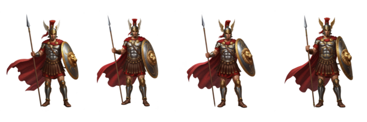 Set of ancient Roman centurion soldiers with spear and shield for historical and mythology battle scenes, PNG, Oil Paint