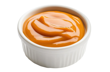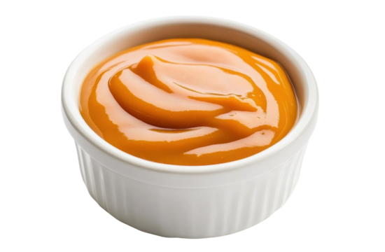 A charming orange ceramic honey pot with a bright yellow lid isolated on transparent background