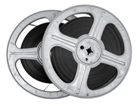 Stack of Two Classic Film Reels, top-down view, isolated on transparent background
