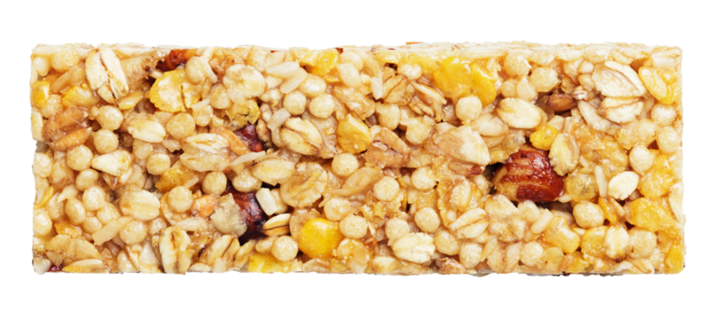 Top view of healthy granola bar (muesli or cereal bar) isolated on transparent background with clipping path