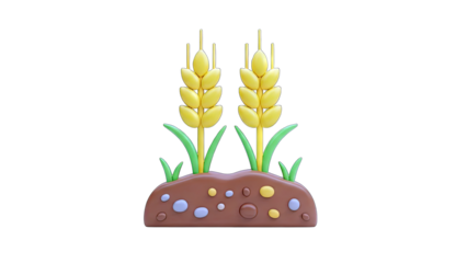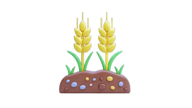 3D Cartoon Wheat Ears Growing from Soil on transparent background