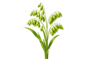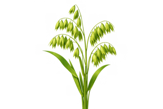 Green oats cereal plant with ripening ears and leaves on a transparent background, symbolizing agriculture and healthy food