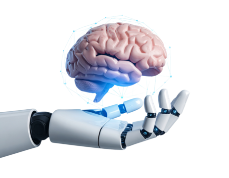 Half Human Half Digital Brain Fusion, Representing Mind and Machine Synergy, Isolated on Transparent Background