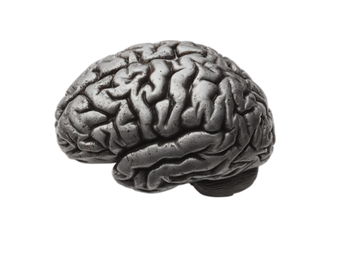 Realistic Human Brain Anatomical Model Front View, Isolated on Transparent Background
