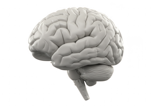 Detailed 3d rendering of a human brain showing the cerebrum cerebellum and brainstem isolated on transparent background