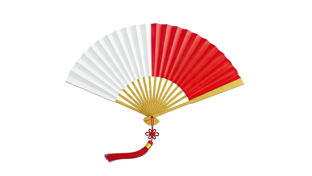 Red and White Folding Fan with Red Tassel