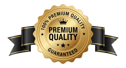 Gold Premium Quality Seal with Black Ribbon on Black Background