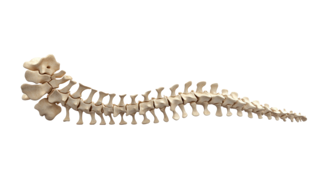 human spine anatomy model, fossilized bones, educational, medical, transparent background