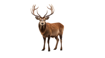 Isolated deer with antlers looking left standing gracefully in a natural pose