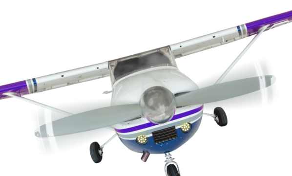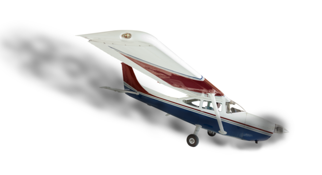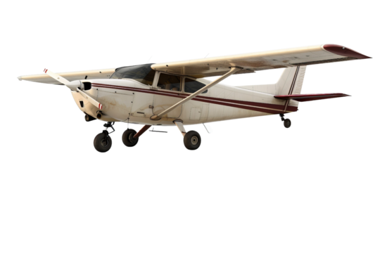 A small Cessna airplane isolated on a white background, showcasing its light frame and utility for general aviation.