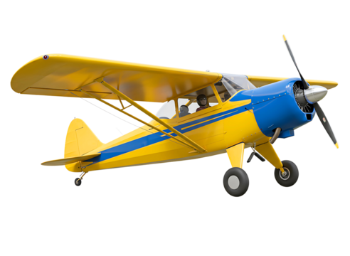 Small single engine airplane isolated on transparent background