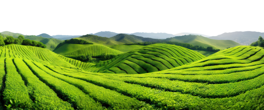 Picturesque tea plantation, cut out, transparent PNG