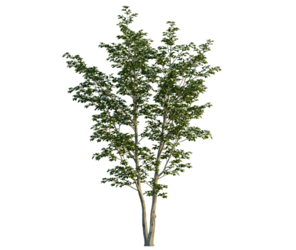 Stewartia pseudocamellia tree, front view, cutout, transparent background, isolate, Blooming tree boasts spring freshness in landscape designs and 3D renders