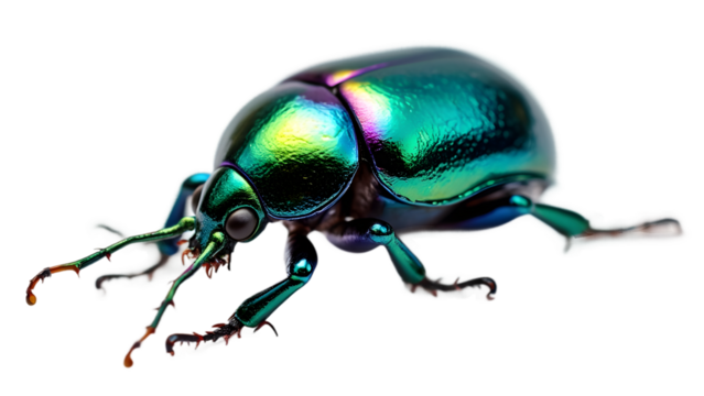 Isolated iridescent beetle specimen close-up, vibrant colors, metallic sheen, detailed insect shot