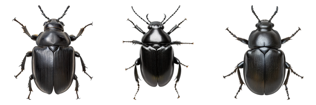 Set of ornate golden beetles with intricate detailing, isolated on transparent background