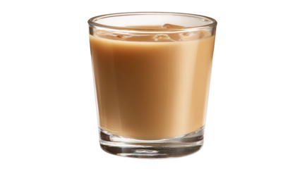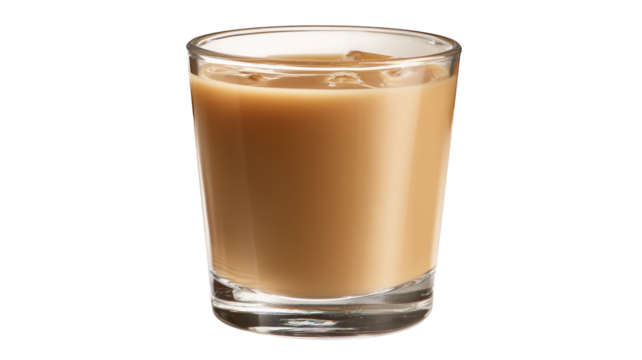 Traditional glass of hot milky tea or coffee beverage isolated.
