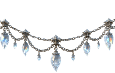 Elegant crystal chain adorned with sparkling gems, perfect for adding touch of luxury to any decor. This stunning piece captures light beautifully, creating mesmerizing effect
