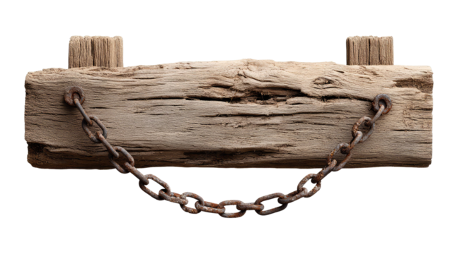 Weathered Wood and Chain: Rustic detail shot of weathered wood and chain, evoking feelings of nostalgia and history, perfect for themes like craftsmanship, the passage of time.