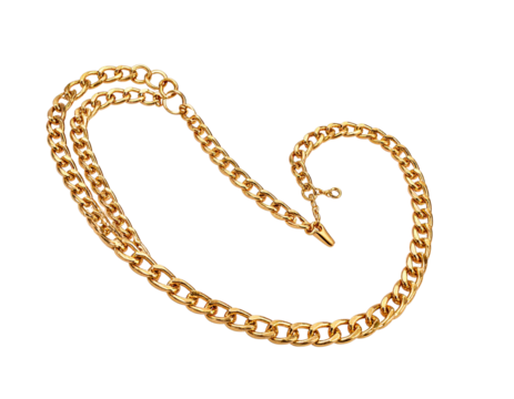 Gold chain necklace isolated on transparent background, a luxurious accessory