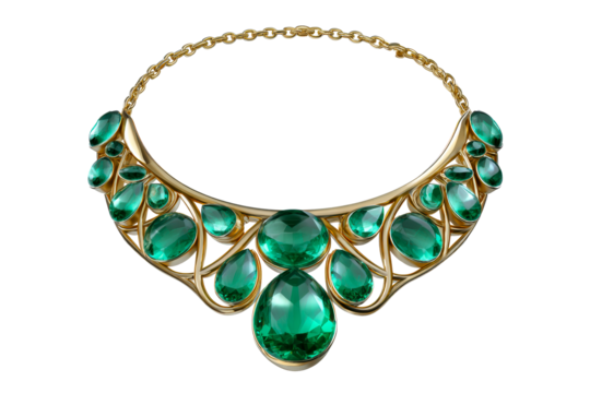 Closeup of a luxurious gold rope chain necklace with diamonds, isolated on transparent background