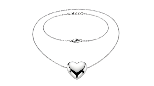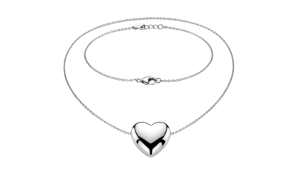 Shiny silver heart pendant necklace accessory for luxury jewelry design and retail advertising isolated PNG with Transparent Background