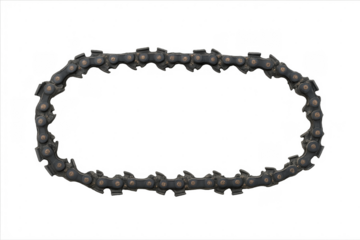 Chainsaw chain forming an oval frame on transparent background