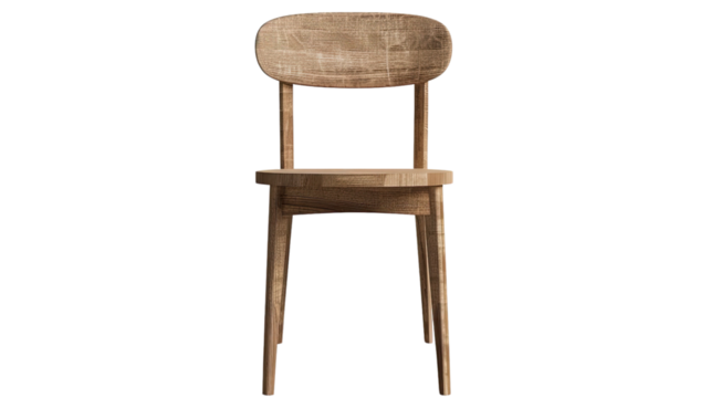Wooden Chair: A front view of a meticulously crafted wooden chair showcases its timeless design and natural beauty, highlighting the simplicity and elegance of the seating.