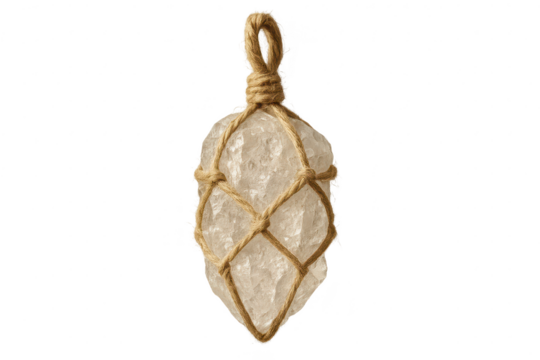 Clear Quartz Crystal wrapped in Macrame isolated on transparent background