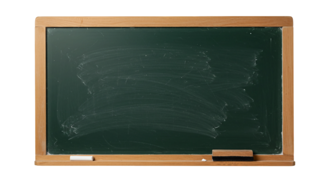 Empty green chalk board with wooden frame, transparent background, clean classroom writing surface for education concept