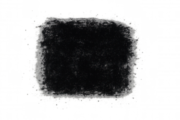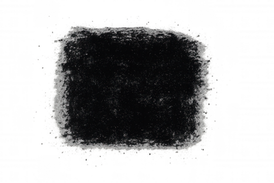 Abstract black chalk smudge forming a square, grunge texture element, usable as an ink overlay on a transparent background